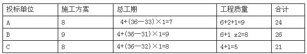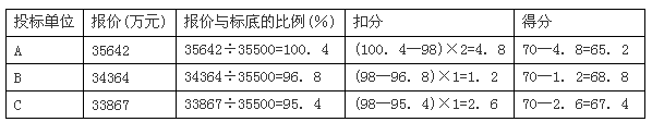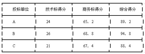 (3)计算各投标单位的综合得分: