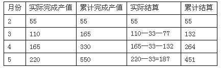 工程各月实际完成产值见下表。