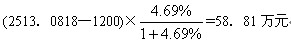 (2513.0818-1200)/2513.0818×(20+10+32)=32.39万元
