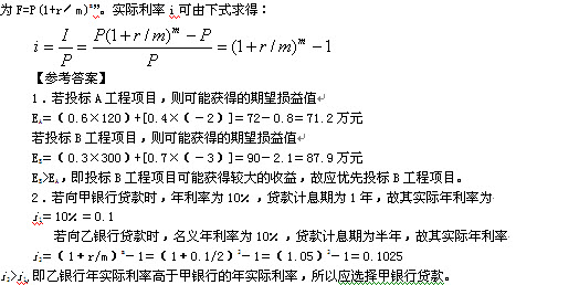 2.该公司由于流动资金不足,拟向银行贷款订购设备,现有两家银行可供选择。甲银行贷款年利率为10%,计息期1年;乙银行贷款年利率为10%,计息期为半年,按复利计算。