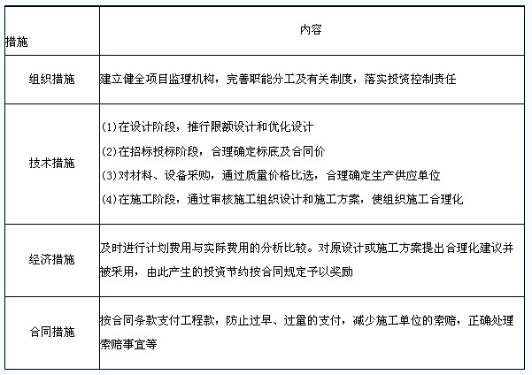 表6-5投资目标控制的措施
