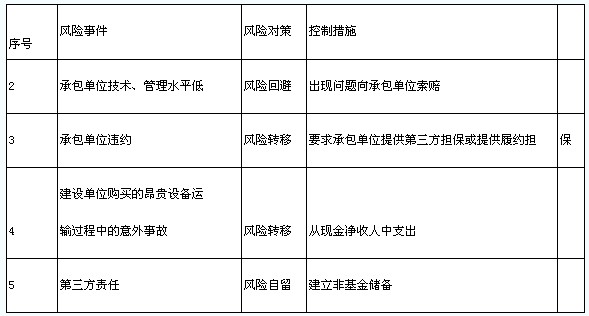 建设单位的风险事件提出了风险对策,制定了相应的风险控制措施,见表2―1。