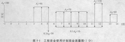 3.该工程资金使用计划的现金流量图如图5―1所示。