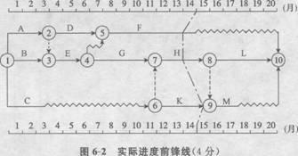 1.第l4个月检查时的工程实际进度前锋线如图6-2所示。