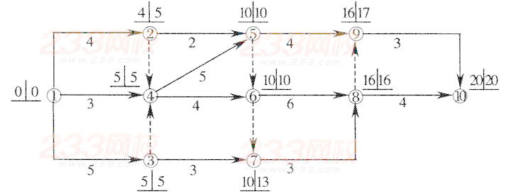 某工程双代号网络计划如下图所示,图中已标出每个节点的最早时间和最迟时间,该计划表明( )。