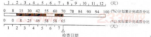 某混凝土工程按计划12 天完成,下图中标出了截止第7 天末的实际施工时间,从图中可以看出( )。
