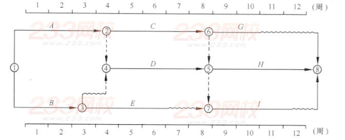 某工程双代号时标网络计划如下图所示,其中工作日的总时差为()周。