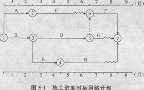 某工程项目施工合同于2010年12月签订,约定的合同工期为20个月,2011年1月开始正式施工。施工单位按合同工期要求编制了混凝土结构工程施工进度时标网络计划(如图5―1所示),并经专业监理工程师审核批准。该项目的各项工作均按最早开始时间安排,且各工作每月所完成的工程量相等。各工作计划工程量和实际工程量见表5―1。工作D、E、F的实际工作持续时间与计划工作持续时间相同。