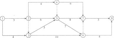 65.在工程网络计划中,如果某项工作的最早开始时间和最早完成时间分别为3 d和8 d,则说明该工作实际上最早应从开工后( )。