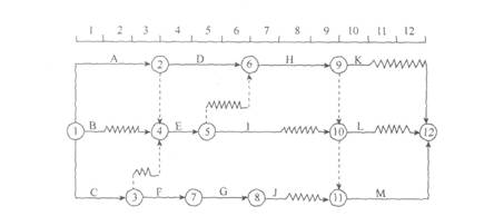 67.某分项工程双代号时标网络计划如下图所示,其中工作C和工作1的最迟完成时间分别为第( )天。