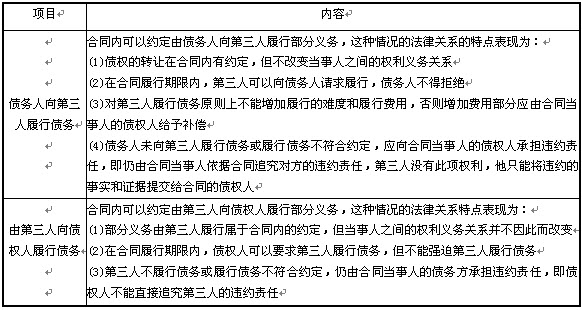 表2-11合同履行中的债权转让和债务转移