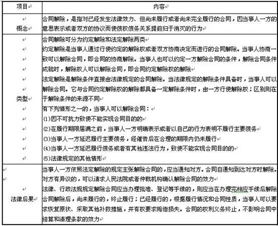 表2-14合同解除