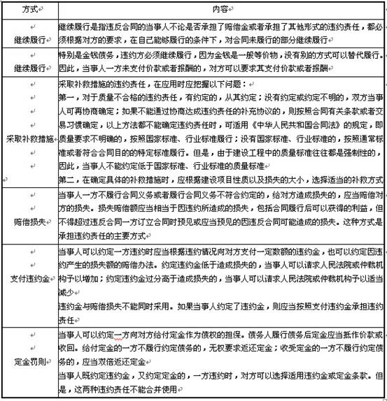 摘要 合同法律制度之违约责任 承担违约责任的方式