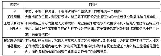 表3-11影响委托监理工作范围的因素