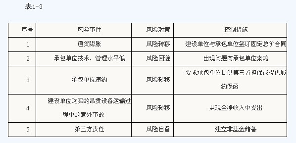 【背景资料】某工业建设工程项目建设单位委托了一家监理单位协助组织工程招标并负责施工监理工作。总监理工程师在主持编制监理规划时,安排了一位专业监理工程师负责该建设项目风险分析和相应监理规划内容的编写工作。经过风险识别、评价,按风险量的大小将该项目中的风险归纳为大、中、小三类。根据该建设项目的具体情况,监理工程师对建设单位的风险事件提出了风险决策,相应制定了风险控制措施(见表1―3)。
