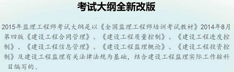 摘要 2015年注册监理工程师考试变革的四方面体现如下所示,希望2015年准备参加监理工程师考试的考生对考试变革早有认识。