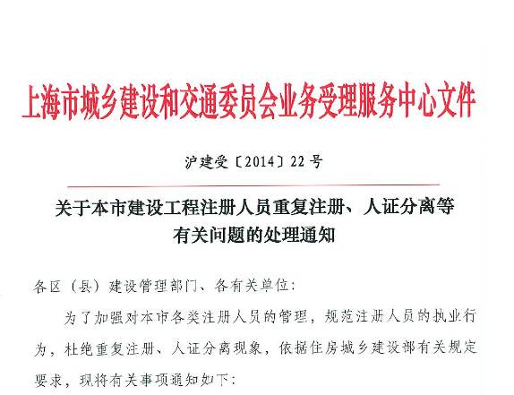 上海建设工程注册人员重复注册、人证分离等问题的处理