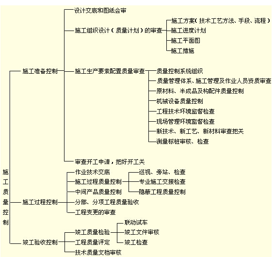 施工阶段的质量控制是一个由对投入的资源和条件的质量控制,进而对生产过程及各环节质量进行控制,直到对所完成的工程产出品的质量检验与控制为止的全过程的系统控制过程。