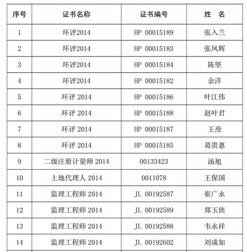 摘要 蚌阜监理工程师资格证书领取通知(2014年12月第2批)如下所示: