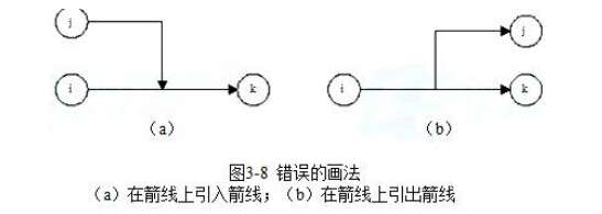 (6)严禁在箭线上引入或引出箭线,图3-8即为错误的画法。