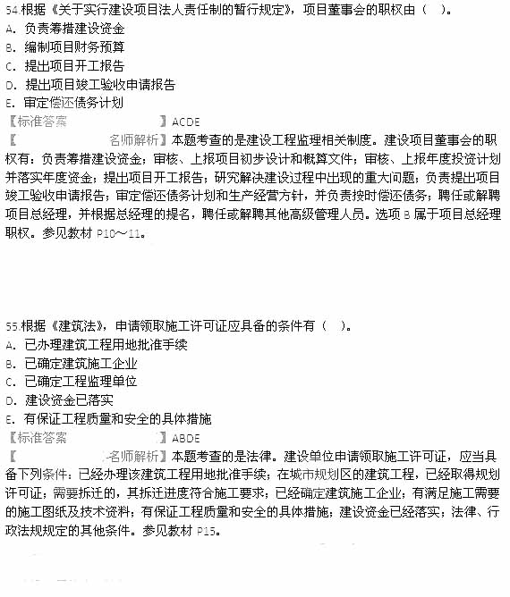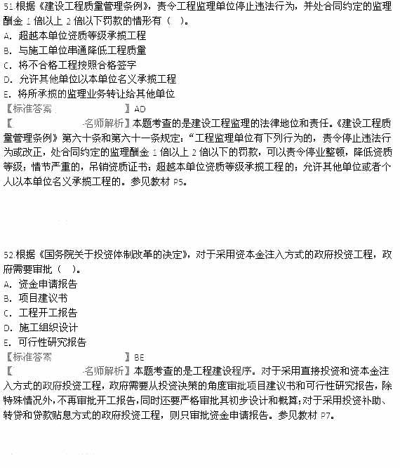 2015年监理工程师理论与法规真题与答案(51-56)