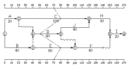 已知某工程项目的时标网络计如下图所示。