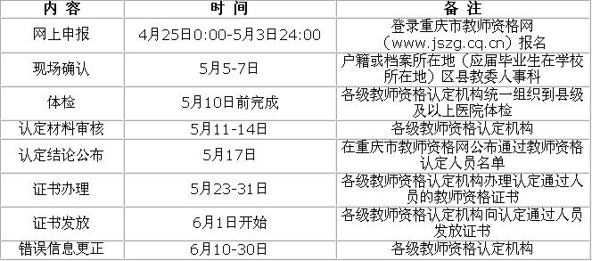 2011年春季重庆市教师资格认定时间安排