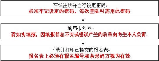 (3)选择网上付费的考生,必须在报名规定的时间内进行网上付费,并在规定的日期内打印报名表,完成上述步骤后,请按照报名表上规定的时间和地点领取准考证。