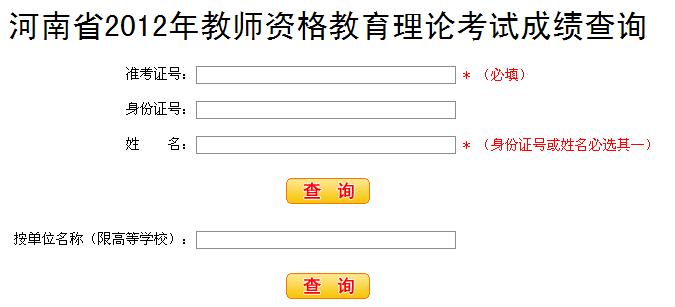 由河南省人事考试网站得知河南省2012年教师资格教育理论考试成绩查询开始,请点击下面的图片进入查询页面