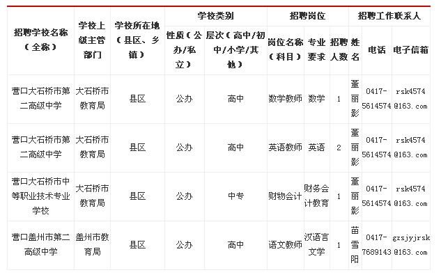 2013年辽宁营口市招聘本市免费师范毕业生岗位需求表