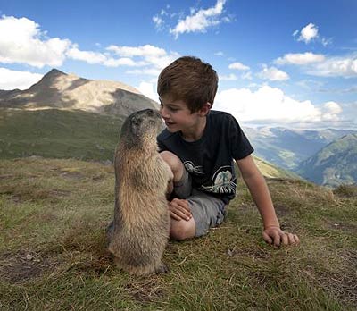 It is clear from the pictures that Matteo and the marmots are totally comfortable in each other’s company.