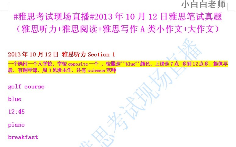 编辑推荐》》》》2013年全年雅思考试机经汇总