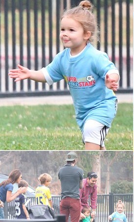 上周末贝克汉姆一家在洛杉矶和朋友一起踢球,哈珀?贝克汉姆向大家展示了良好的运动能力是跟家族遗传有关的。