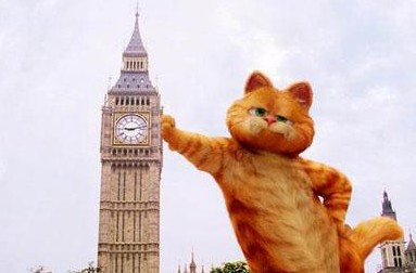 Garfield is an orange, fuzzy, tabby cat born in the kitchen of an Italian restaurant and immediately ate all the pasta and lasagna in sight, thus developing his love and obsession for lasagna. Garfield hates exercise. He is known for saying breathing is exercise.