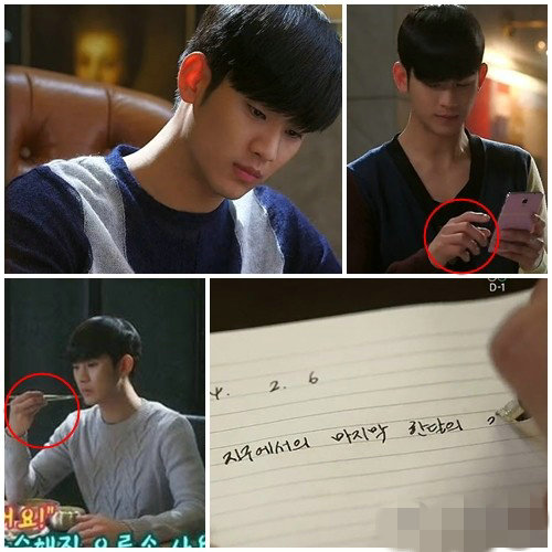 对此,金秀贤所属公司KEYEAST的相关人士说明道:“金秀贤的确是用左手写字的左撇子。”,“但是在不断的努力下,他也能使用右手写字。虽然不自然也不顺手,但是为了配合作品和角色只能如此。金秀贤觉得都敏俊更适合用右手”。