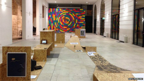 展览负责人说,在黎明之前交给城市卫生人员的工作包括散落在地上的饼干,这是作为艺术布置的一部分。