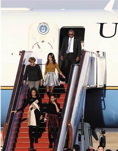 从华盛顿出发,在经历了差不多20个小时的长途飞行之后,我和我的母亲、我的女儿们抵达北京,开始了我们的正式访问。我们的第一站是北师大二附中,中国第一夫人彭丽媛女士接待了我们。