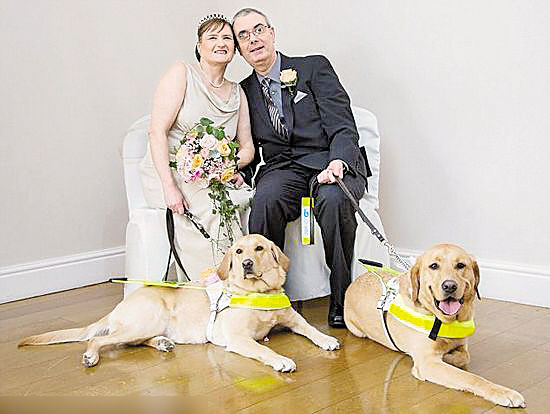 就在相遇一年后,去年情人节马克向克莱尔求婚了。昨天他们在斯托克市的一家酒店结婚了,婚礼上两只导盲犬当戒童。