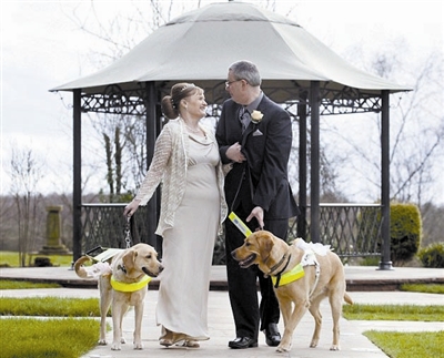 一对盲人夫妇昨日成婚,他们讲述了自己是如何陷入爱河的――导盲犬当“红娘”。