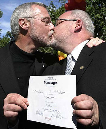 "We didn't want to get married until it was a marriage that my mum and dad could have, that other men or women could have," Teresa Millward, 37, told AFP.