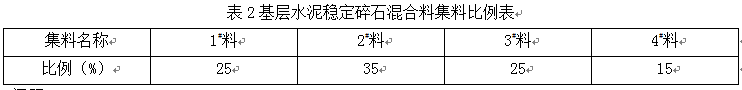 事件三:施工单位试验室确定的基层水泥稳定碎石混合料的集料比例如表2所示,水泥剂量为4.5%(外掺),最大干容重为2.4t/m³,压实度98%。