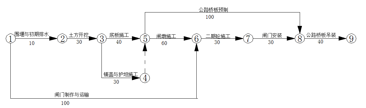事件1:为便于进度管理,技术人员对上述计划中各项工作的时间参数进行了计算,其中闸门制作与运输的时间参数为