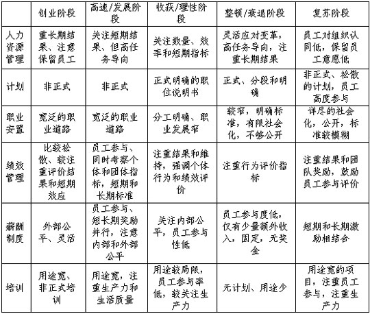 基于企业不同发展阶段的人力资源管理: