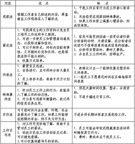 工作分析方法比较