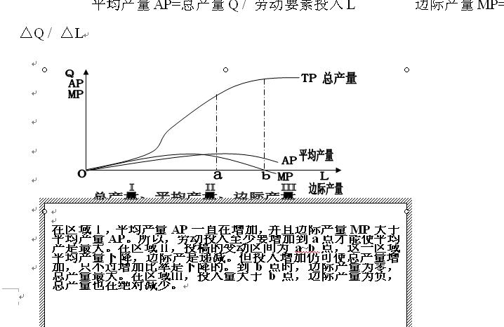 35、企业在资本等生产要素固定不变时,劳动投入的增加量应在区域Ⅱ,即a~b点。
