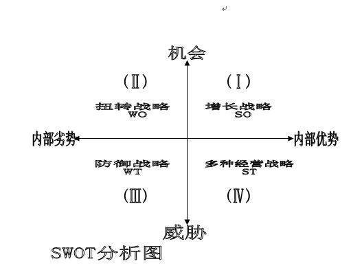 16、SWOT分析法提供的四种战略:增长型战略(SO)、扭转型战略(WO)、防御型战略(WT)、多种经营型战略(ST)