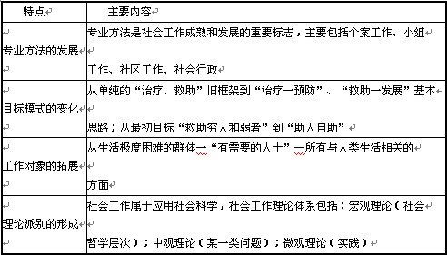 (2)掌握中国社会工作在不同发展阶段的特点,特别是新中国成立后的社会工作发展状况及其特点,要特别理解中共中央十六届六中全会作出《中共中央关于构建社会主义和谐社会若干重大问题的决定》,这也是我国社会工作职业化和专业化取得突破性发展的重要里程碑。