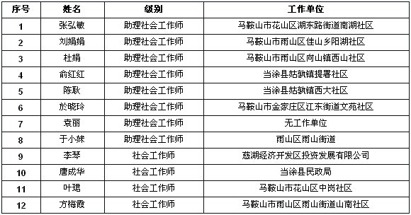马鞍山2011年社会工作者考试证书领取通知