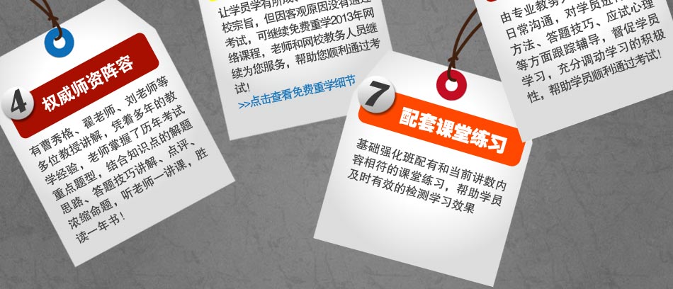 - 2)基础强化班+临考冲刺班+考题预测班+考点精粹班+在线模考+赠送考试教材+定期回访+VIP 服务+当期考试未通过下学期免费重学=1600元。