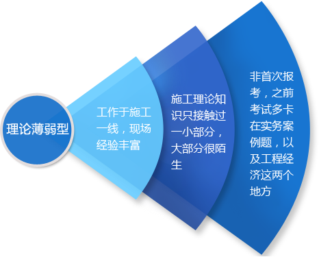 对于理论薄弱型学员,工程经济和实务案例题,将是最难对付的部分。丰富的现场经验并不能直接转化为考试中的分值,理论知识的学习显得尤为重要。